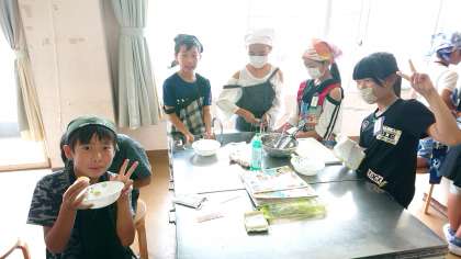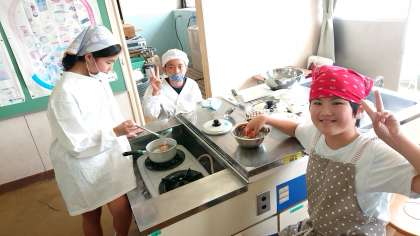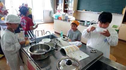 5年2組の家庭科です。調理実習でゆで卵をつくりました。