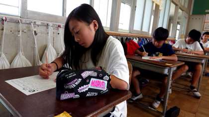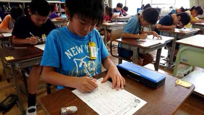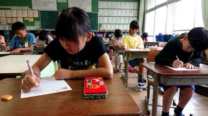 4年1組の国語です。漢字の小テストを頑張りました。