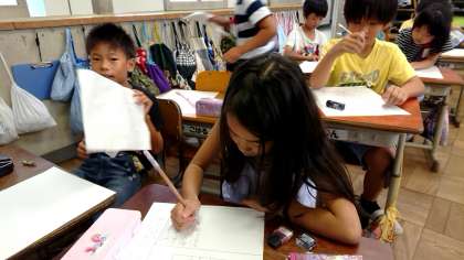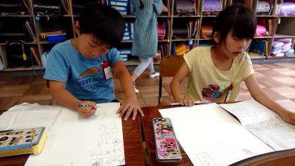 2年2組の生活科です。育てている野菜についての新聞づくりをしました。
