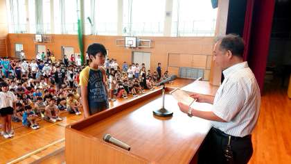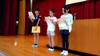 多読賞の表彰と,5年生代表児童による発表がありました。