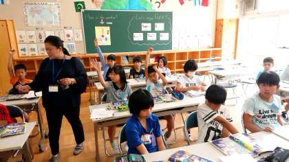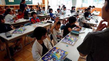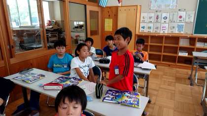 5年3組の外国語活動です。みんな積極的に発言をしています。