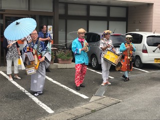 7/7 岡田町並フェスティバル2 公開日 2019/07/08 更新日 2019/07/08 地域行事 子どもたちは笑顔いっぱいであいさつしてくれましたよ。 うれしかったなあ。 チンドン屋さんも登場しました。