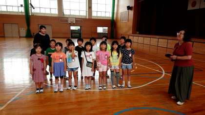 2年3組の子たちが,オペレッタ劇団ともしびの皆さんから歌の指導を受けました。