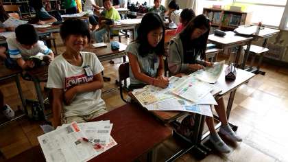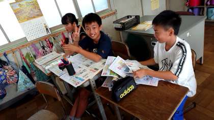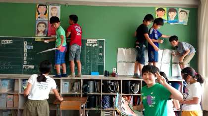 5年2組の学活です。テストの返却や掲示物の片付けをしました。