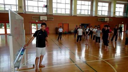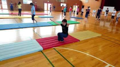 前転,後転などの基本的な技や,技のつなぎかたなどを教えていただきました。