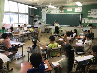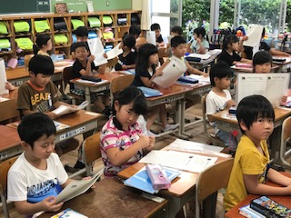 1年生は算数の足し算引き算の勉強をしていました。2年生は漢字ドリルを工夫して学習していましたよ。がんばってね〜!