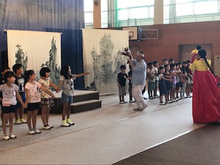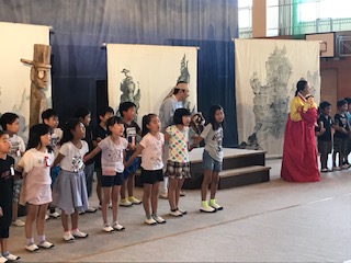 オペレッタ劇団ともしびに来ていただいて、「虎のおんがえし」という歌劇を見せていただきました。冒頭に2年3組の児童も参加させていただき、とっても盛り上がりましたよ。少ない人数で何役もこなしながら、感動的なお話を表現してくださいました。
