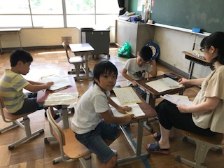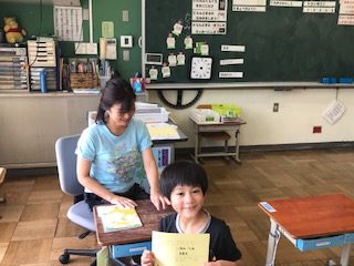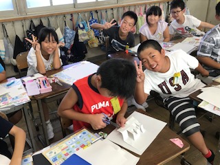 9/9 授業風景2 公開日 2019/09/09 更新日 2019/09/09 4年生 4年生は図工で、「幸せを呼ぶハッピーカード」を制作中にお邪魔しました。完成が楽しみですね。みんなが幸せになりますように…。 ひまわり学級は、2学期のめあてを教師と一緒に考えたり、カタカナの練習をしたりしていましたよ。少しずつ、積み重ねていこうね。