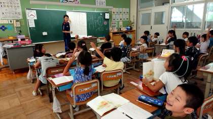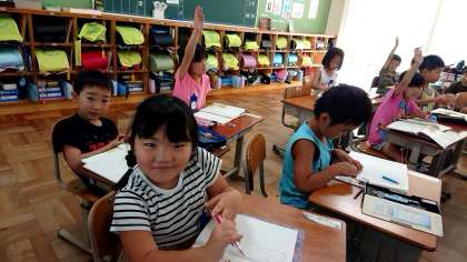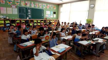 1年1組の国語です。「ゆうやけ」の読み取りをしました。