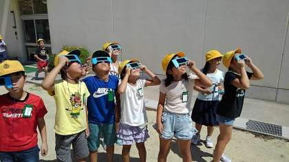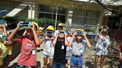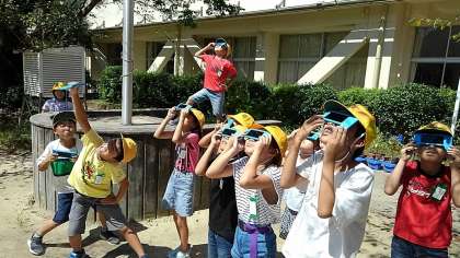 3年1組の理科です。遮光板で太陽の観察をしました。