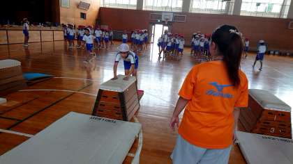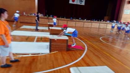 4年2組の体育です。跳び箱運動を頑張りました。