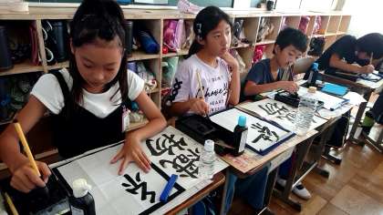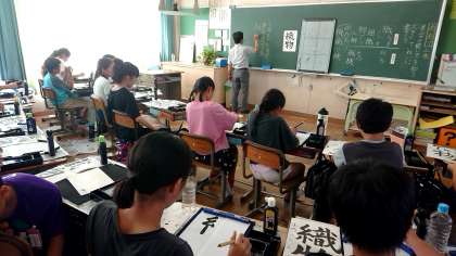6年1組の書写です。「織物」の練習をしました。