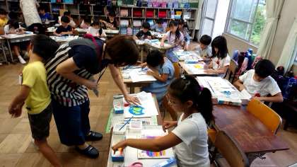 知多市子ども未来館の皆様を講師にお迎えし,砂絵の制作をしました。