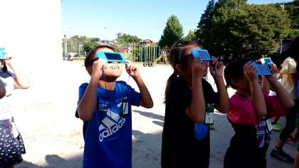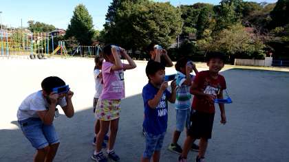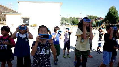 3年2組の理科です。遮光板で,太陽の観察をしました。
