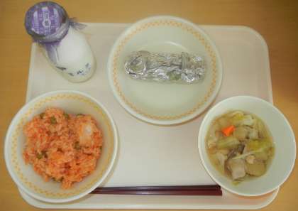 ごはん ぎゅうにゅう チキンライスのぐ じゃがいものチーズむし とうがんいりやさいのスープに