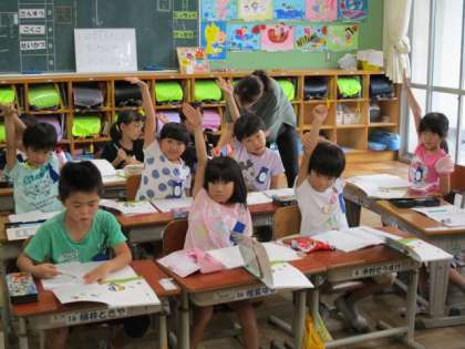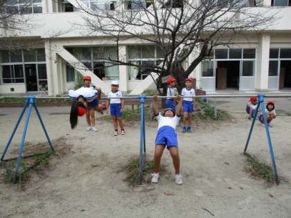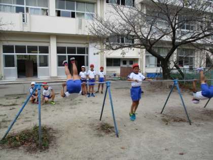 10/3 授業風景1 公開日 2019/10/03 更新日 2019/10/03 4年生 雨模様の天候で、とても蒸し暑いですね。体調をくずされませぬよう…。 1年生は、句読点を忘れずに書くことに注意して、国語の勉強をしていました。手のあげ方が素晴らしいですね。 4年生は、鉄棒の授業で、逆上がりや足かけ回りの練習をしていました。少しコツを教えてあげると、初めてできた子も出て「やった〜!」