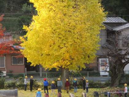 おはようございます!さわやかな朝でしたね。イチョウの黄色い葉っぱが風にハラハラと舞い落ち、黄色の絨毯が形成されています。子どもたちはその様子を興味深そうに眺めています。朝から、運動場では子どもたちの元気な声が聞こえていますよ。