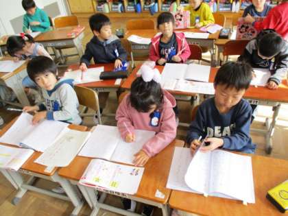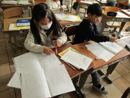 12/12(木)物語の完成へ 2年 公開日 2019/12/12 更新日 2019/12/12 2年生 2年生は自作の物語をつくり、完成に近づいていました。早くできた子は九九の復習。カードを見せてくれましたよ。