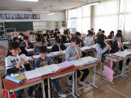 音楽室から知っている音楽が聞こえてきたので、入ってみると5年生がリコーダーの練習中。