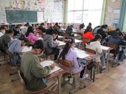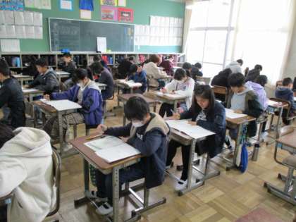 学級閉鎖のないクラスで、学力テストが行われました。 みんな真剣な表情で取り組んでいましたよ。