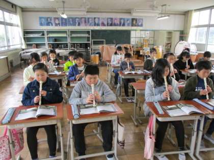 1/17 素敵な音色に誘われて 5年 公開日 2020/01/17 更新日 2020/01/17 5年生 校内を回っていると、素敵な音色が聞こえてきました。音楽室では、リコーダーの練習が行われていました。「風とケーナのロマンス」という素敵な曲のメロディ−が心に残りましたよ。音楽の力ですね。