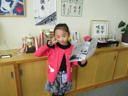 1年生児童がピアノの全国コンクールに出場するということで、校長室で激励しました。今日の新聞にも掲載されていましたね。将来の夢に向かって、がんばれ!