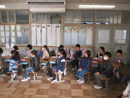 2年生は図工の作品づくりの導入の場面でしたよ。姿勢がいい子が多く、感心しました。