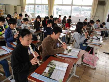 1/24(金)哀愁のメロディ 5年生 2 公開日 2020/01/24 更新日 2020/01/24 5年生 5年生のあるクラスは、音楽室でリコーダーの練習です。哀愁のある、とっても素敵な演奏でしたよ。「風とケーナのロマンス」という曲です。