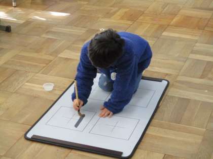 1/29(水)筆の文化 1年生 公開日 2020/01/29 更新日 2020/01/29 1年生 1年生は書写で、「水書」の学習をしていました。学習指導要領の改訂にともなって1・2年生にも日本の伝統的な文化である書道を学習してもらおうというものです。ただ、墨でなく水で書くというものです。毛筆は硬筆の基本が学べるのです。がんばってね! 他のクラスは、先生に添削をしてもらっていましたよ。