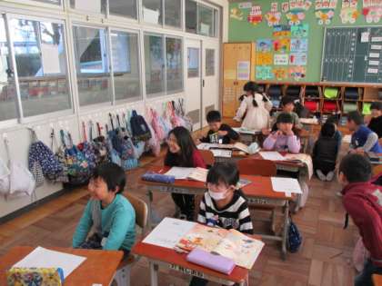 2/4(火)からだが動くね 1年生 公開日 2020/02/04 更新日 2020/02/04 1年生 1年生は音楽で、鑑賞をしていました。 子犬のワルツが流れると、思わず犬になりきってしまう子もいて、1年生らしかったですよ。 先生の添削を受けているクラスもありました。