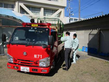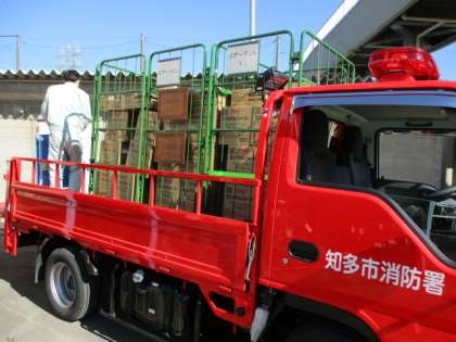 知多市役所の防災危機管理課の方々が備蓄倉庫に入れる飲み物等を運び入れてくださいましたよ。