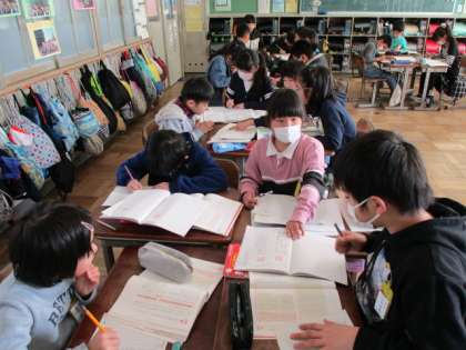 2/5(水)要旨をつかんで 4年生 公開日 2020/02/05 更新日 2020/02/05 4年生 4年生は国語で「ウナギのなぞを追って」の要約文を書いていました。 読解力と表現力が試されるね。 がんばって!