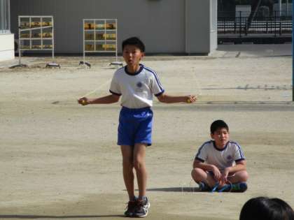 2/5(水)技とともに持久力も 5年生 公開日 2020/02/05 更新日 2020/02/05 5年生 運動場で体育の授業をしているクラスもありました。 さまざまな跳び方で、続けて跳べる時間を調べました。 技のスキルに加え、持久力養成になるね。