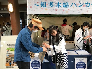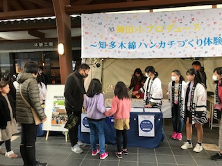 2/25(火)梅まつりで知多木綿作品のPR販売1(2/23) 公開日 2020/02/25 更新日 2020/02/25 6年生 2月23日(日)に、6年生が岡田っ子デザインの知多木綿オリジナル作品をPR販売しました。 オカトクの社長さんも駆けつけてくださいましたよ。 知多市役所や日本福祉大学の協力を得て、大盛況でしたよ。
