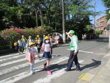 交通指導委員さんや老人会(長生会、長寿会)の皆さんも立哨してくださって、安全に登校できました。