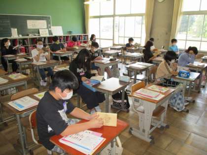 早速の読書タイムも落ち着いてできていました。感心ですよ。 学校をリードするべく、がんばってね!
