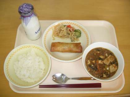 6月15日(月)給食 公開日 2020/06/15 更新日 2020/06/15 給食 今日から通常給食がはじまりました。 今日の献立は ごはん・ぎゅうにゅう・あいちのやさいはるまき マーボーどうふ・きりぼしだいこんサラダ です。