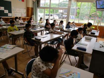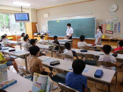 6/16(火)外国語の授業 4年生 公開日 2020/06/16 更新日 2020/06/16 4年生 外国語教室からは楽しそうな声が…。 4年生が英語の授業を受けていました。 このような授業を受けていたら、きっと英語が得意になるよ。
