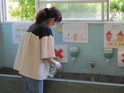 校舎内を動き回って、さまざまな場所を消毒してくださってありがとうございます。