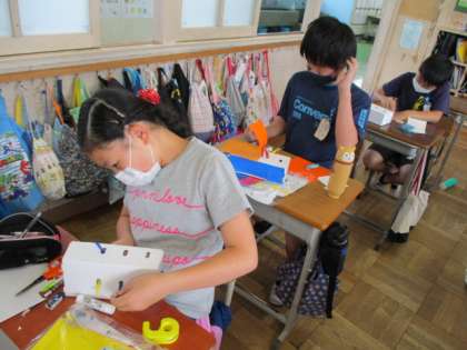 6/18(木)図工の授業 6年生 公開日 2020/06/18 更新日 2020/06/18 6年生 図工でクランクの仕組みを使った作品づくりをしていました。 どんな工夫ができるか、一人一人が知恵をしぼっていたところがよかったね。