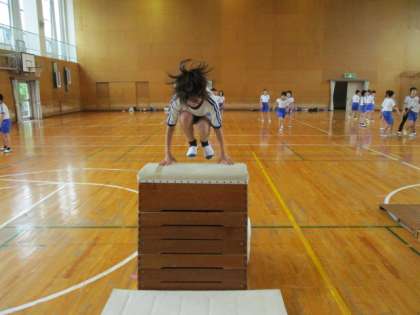 それぞれの課題の高さや跳び方に、教え合いながら挑戦していました。