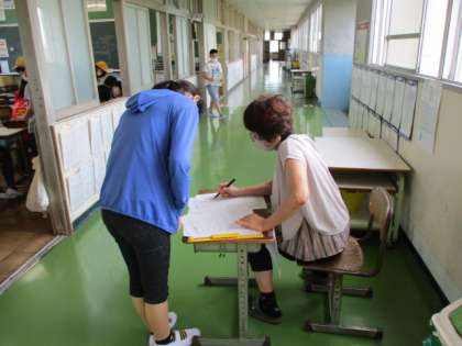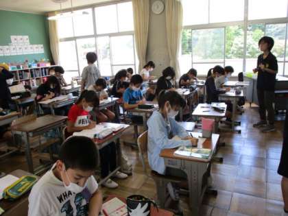 7/16(木)しっかりと理解する 6年生 公開日 2020/07/16 更新日 2020/07/16 6年生 6年生は算数で、教え合い学習が行われていました。教師2名に、適宜ミニ先生も活躍し、理解を深めるようにしていました。廊下では個別に指導も行われ、中身の濃い時間となりましたね。 社会で、作文学習に取り組んでいるクラスもありました。