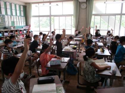 7/27(月)辞書を使って 3年生 公開日 2020/07/28 更新日 2020/07/28 3年生 3年生は国語で、中点やダッシュの使い方を学んでいました。 辞書を片手に、すぐ調べるという姿勢がいいですね。