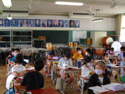 4年生は算数や音楽の授業に真剣に取り組んでいました。 その調子でがんばってね。