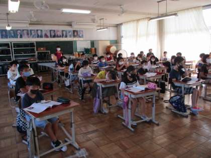 9/30(水) 授業風景 5年生 公開日 2020/09/30 更新日 2020/09/30 5年生 5年生は、あいさつの大切さについて話し合ったり、図工の作品を作ったりしていましたよ。音楽で「民謡」の学習をしているクラスもありました。普段しゃべっているような言葉を使ったり、ゆっくりゆったりと歌ったりと、民謡の特徴をよくとらえていましたね。「こきりこ節」は心に残りますね。