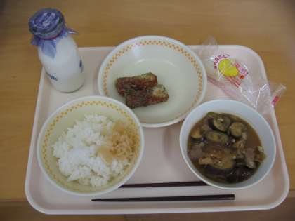 ごはん・ぎゅうにゅう・ちくわのいそべあげ2こ