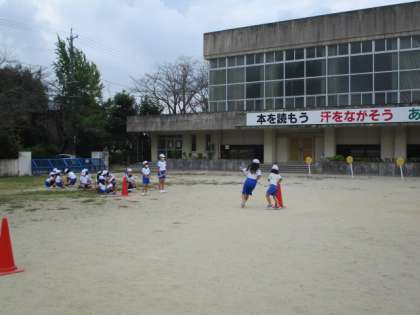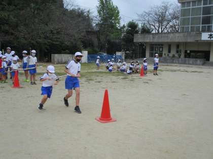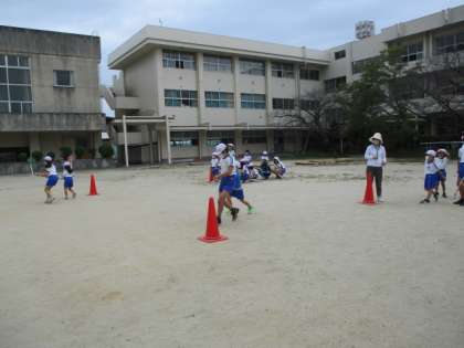 1年生と6年生が合同で、オカリンピックの練習に取り組んでいました。確認をかねて、実際に走っていました。6年生の優しい姿が印象的でしたよ。