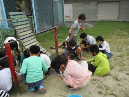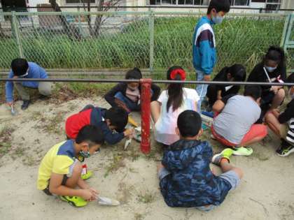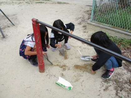 校庭に出て、理科の授業の実習をしていました。日なたと日陰の温度を比較して、検証しました。うん、こういう学習が大切なんです。