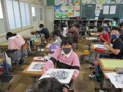 10/8(木) 授業風景 5年生 公開日 2020/10/08 更新日 2020/10/08 5年生 5年生が図工で、版画に取り組んでいました。とても素敵な原画を工夫し、どんな作品を彫り上げるのでしょうね。