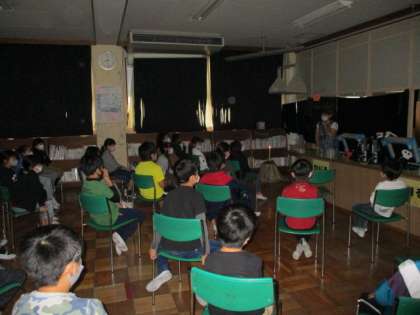 お話の伝道師、小泉さんによるストリーテリングがありました。いつも、感動的な話を語って聞かせてくださっています。今日のお話は「ルンペルシュティルツヒェン」というグリムの昔話でした。子どもたちは物語の世界にひきこまれ、浸っていましたよ。